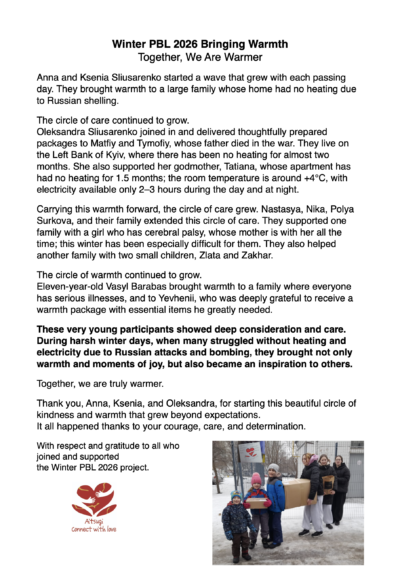 Children in Gatne Center in spite of air raid warnings and going to the bomb shelter, finished their project successfully.